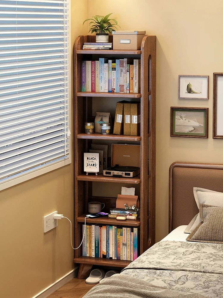 北欧スタイル全無垢材本棚 - 美しい収納と空間活用!家庭用壁寄せ書棚、リビングと寝室の隅にぴったりのコーナーラック