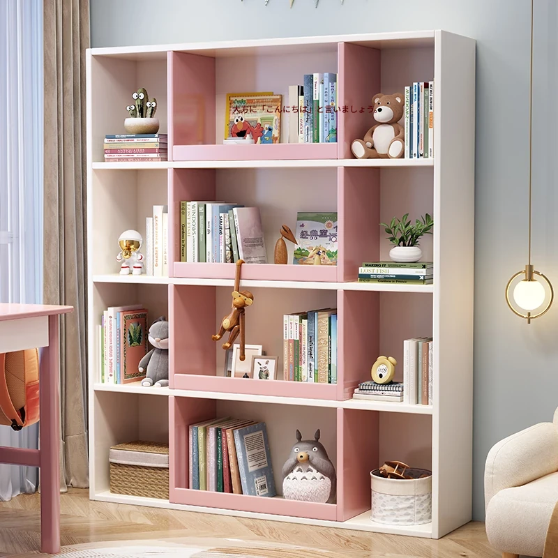 お子様にぴったり!天然木製幼稚園用絵本ラック&おもちゃ収納棚 - 家庭用リビングルームフロアブックケース