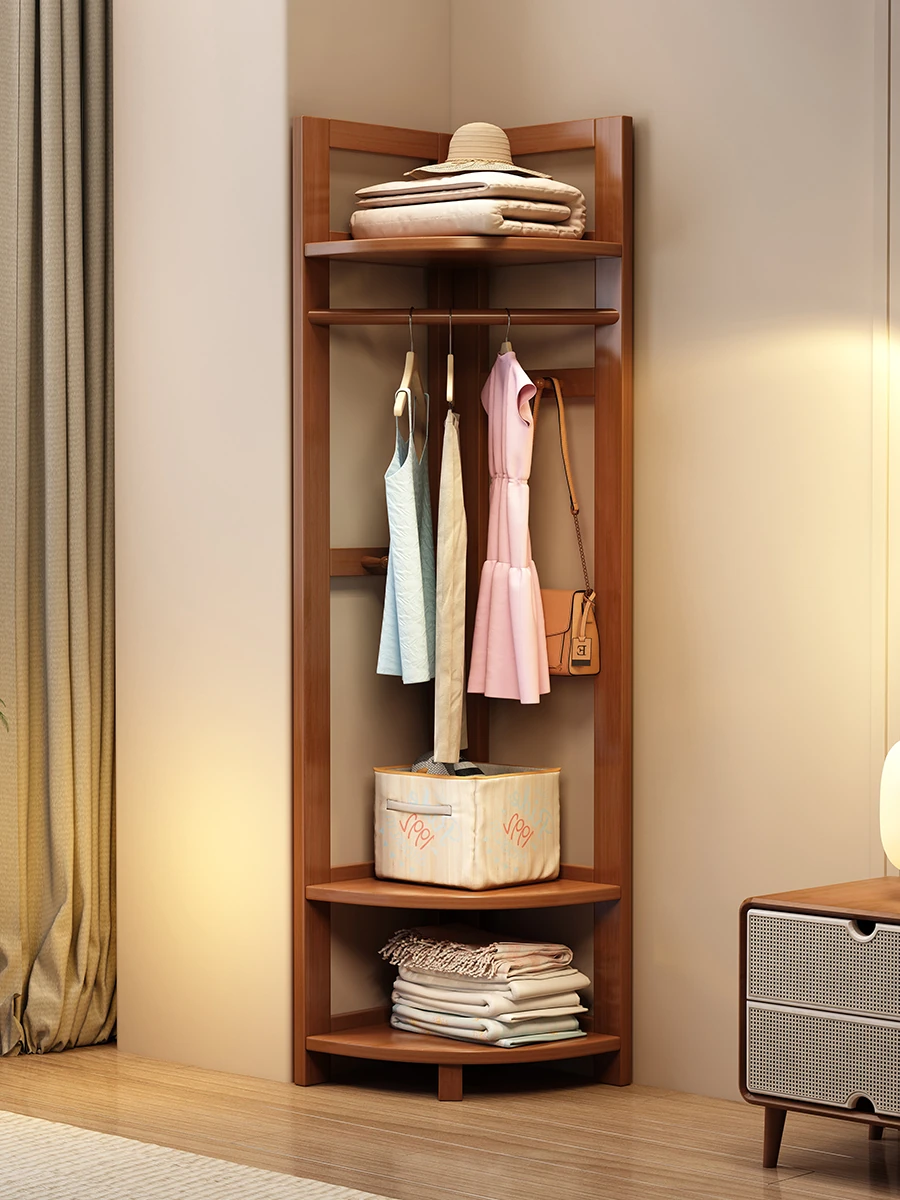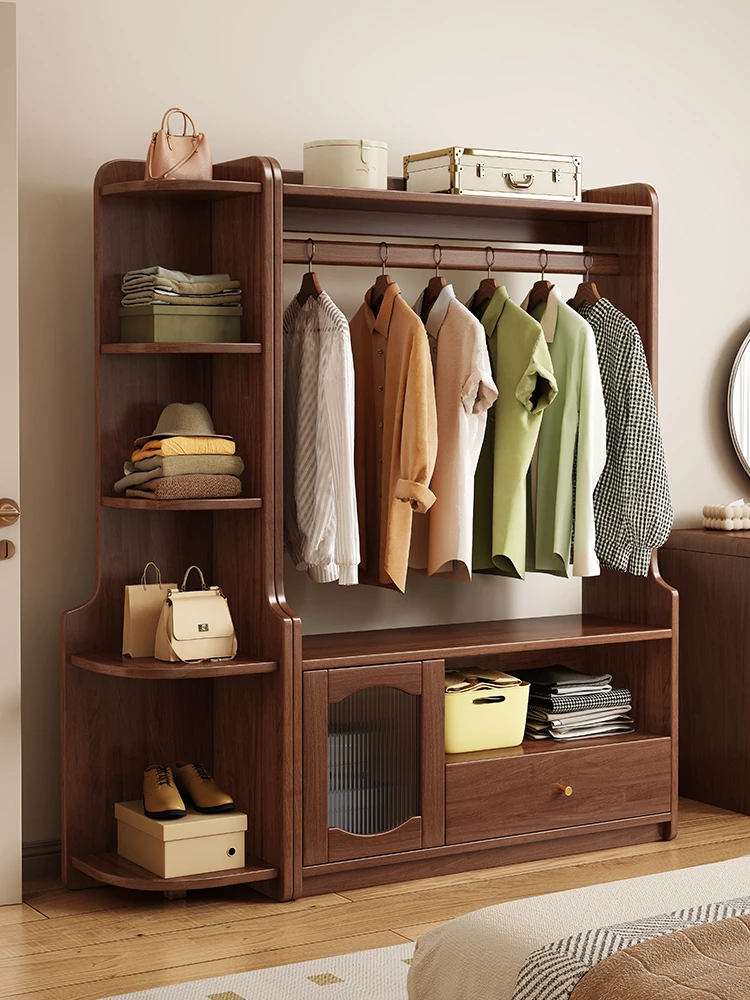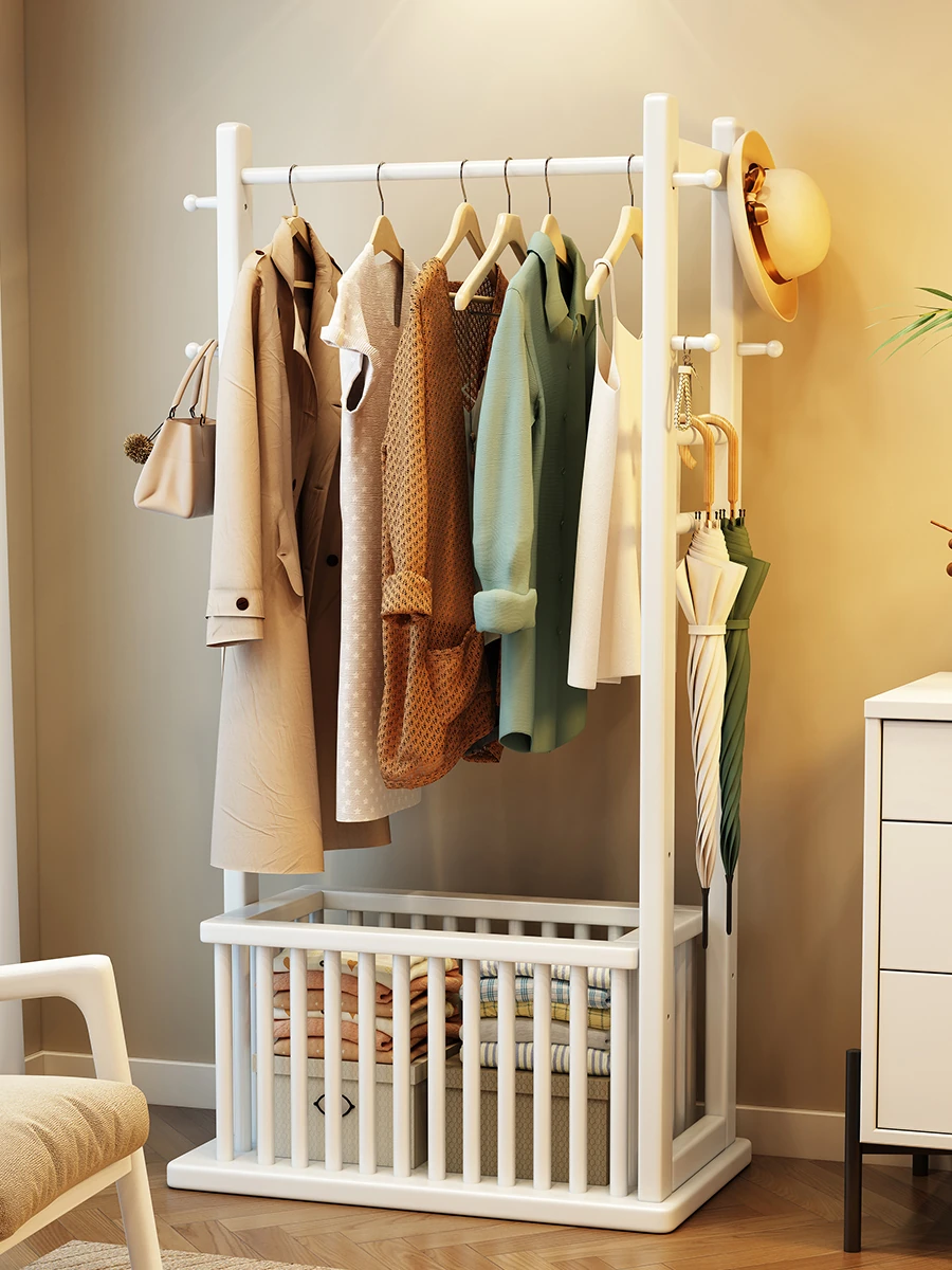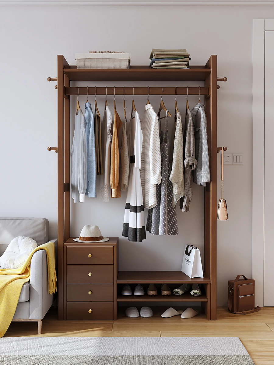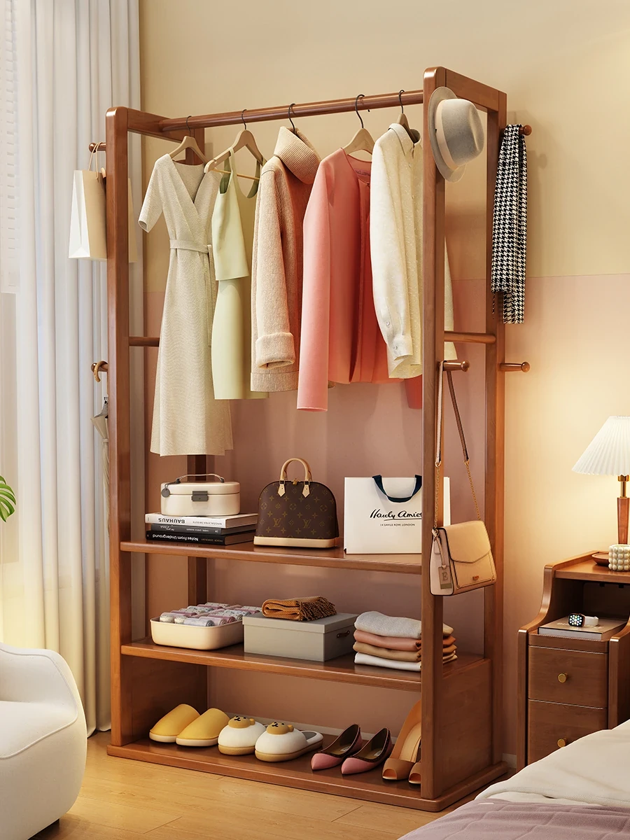 北欧スタイル天然木製コートラック - 大容量!省スペースな収納力で寝室もスッキリ整理整頓