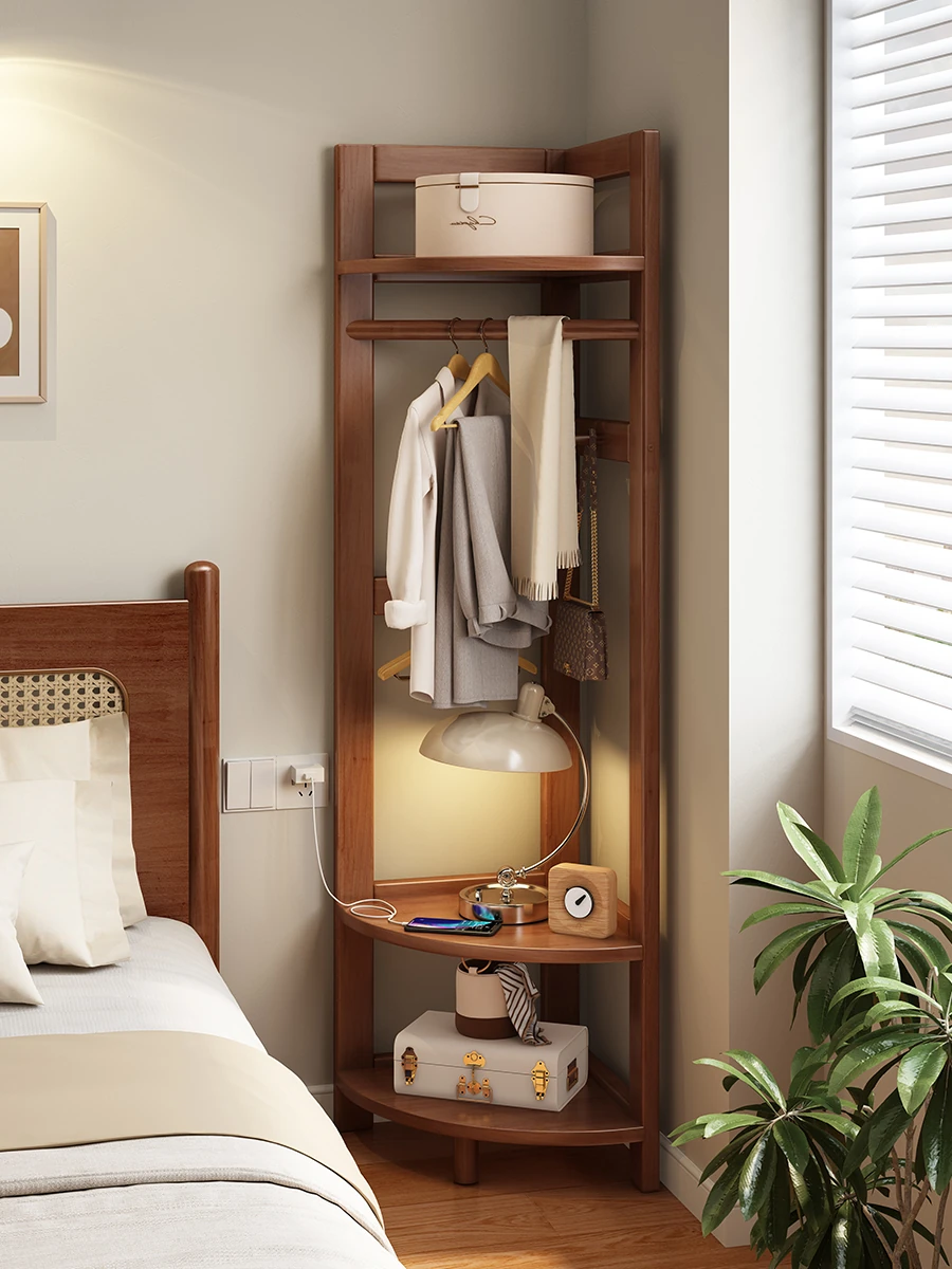 実木スタンド式コートラック:省スペース設計!ベッド脇にぴったり、衣類収納も一体化!家庭用に最適な多機能ハンガーラック