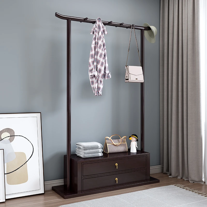高級感あふれるモダンなデザイン!天然木製コートラック - リビング&ベッドルームにぴったり!便利な引き出し付きで、収納力抜群!