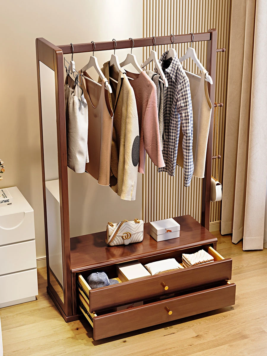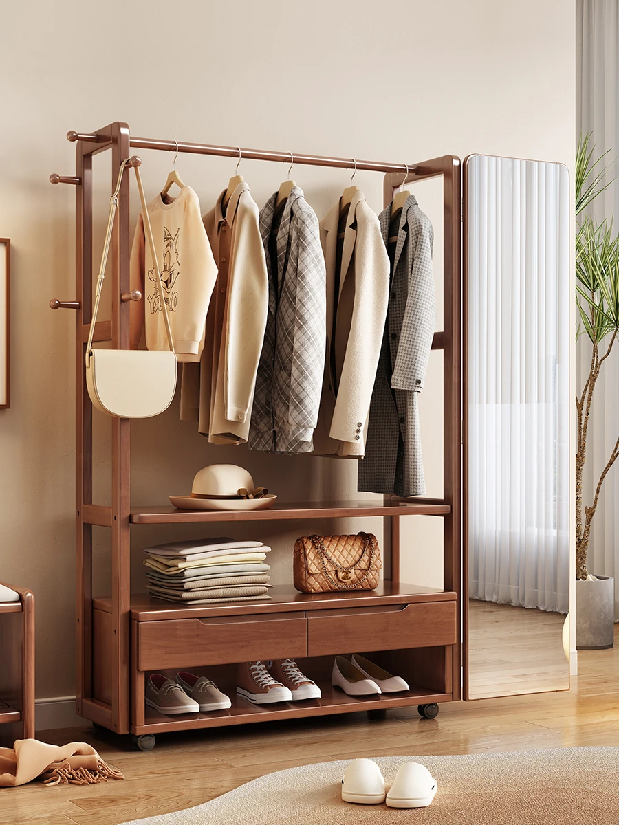 【天然木质】多功能ハンガーラック&ドレッサーミラーセット – 大容量!寝室用衣類収納スタンド