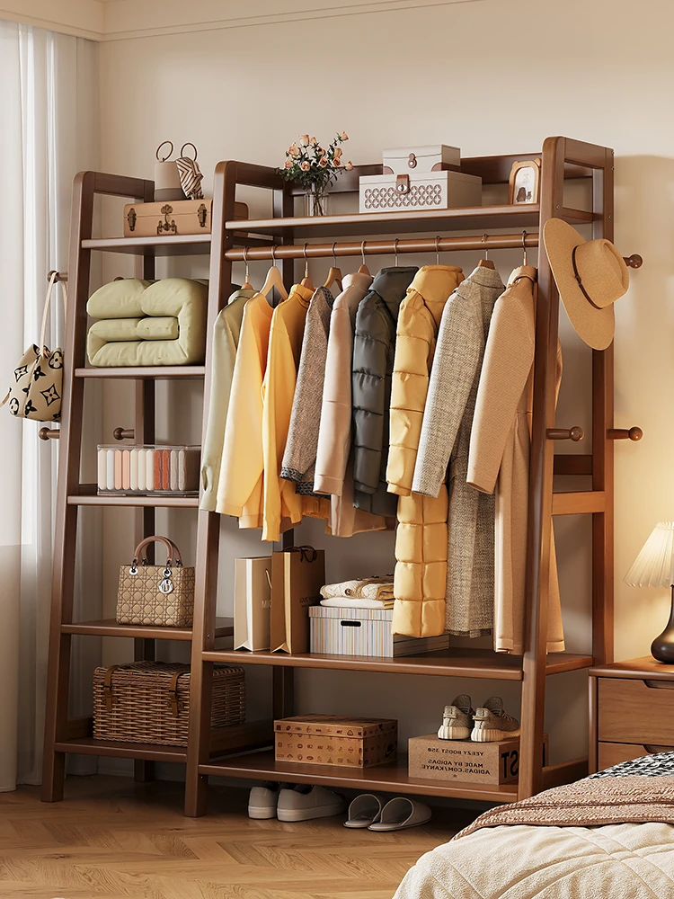 【新登場】本物の木製多機能ハンガーラック:可動式で、衣類も小物もスッキリ収納!モダン中華スタイルで、リビングや寝室にぴったり。おしゃれで実用的な選択をお楽しみください!
