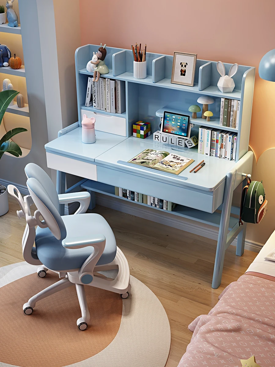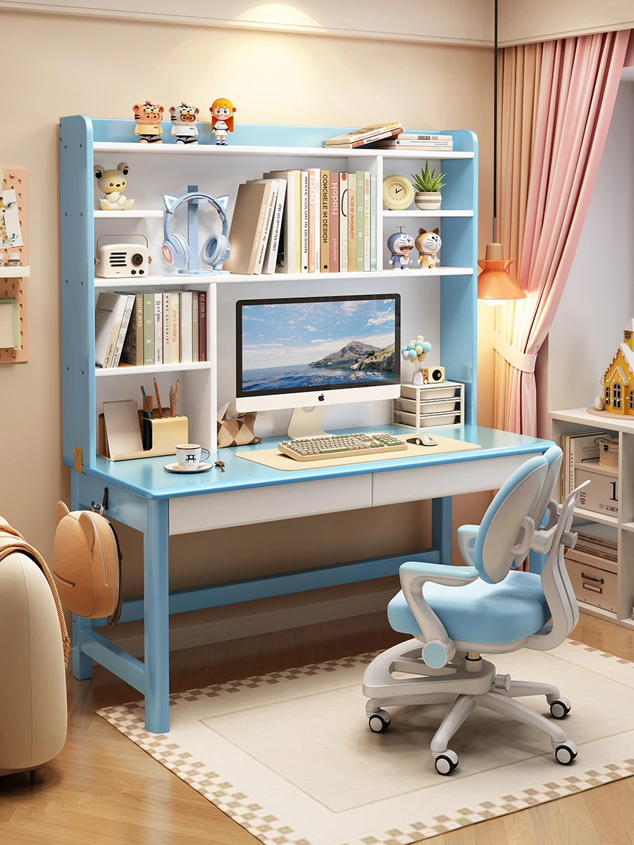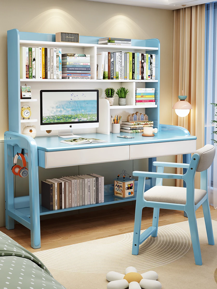 子供用木製学習デスクセット - 丈夫で安全、大容量の本棚付き!家庭用・学生用・書斎・寝室にピッタリな多機能パソコンデスク。