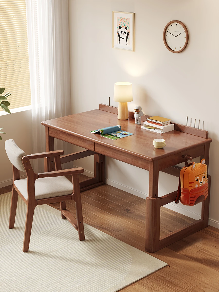 【おすすめ】成長に合わせて高さ調整可能!家庭用学習机・椅子セット - 中小学生向け天然木製デスク