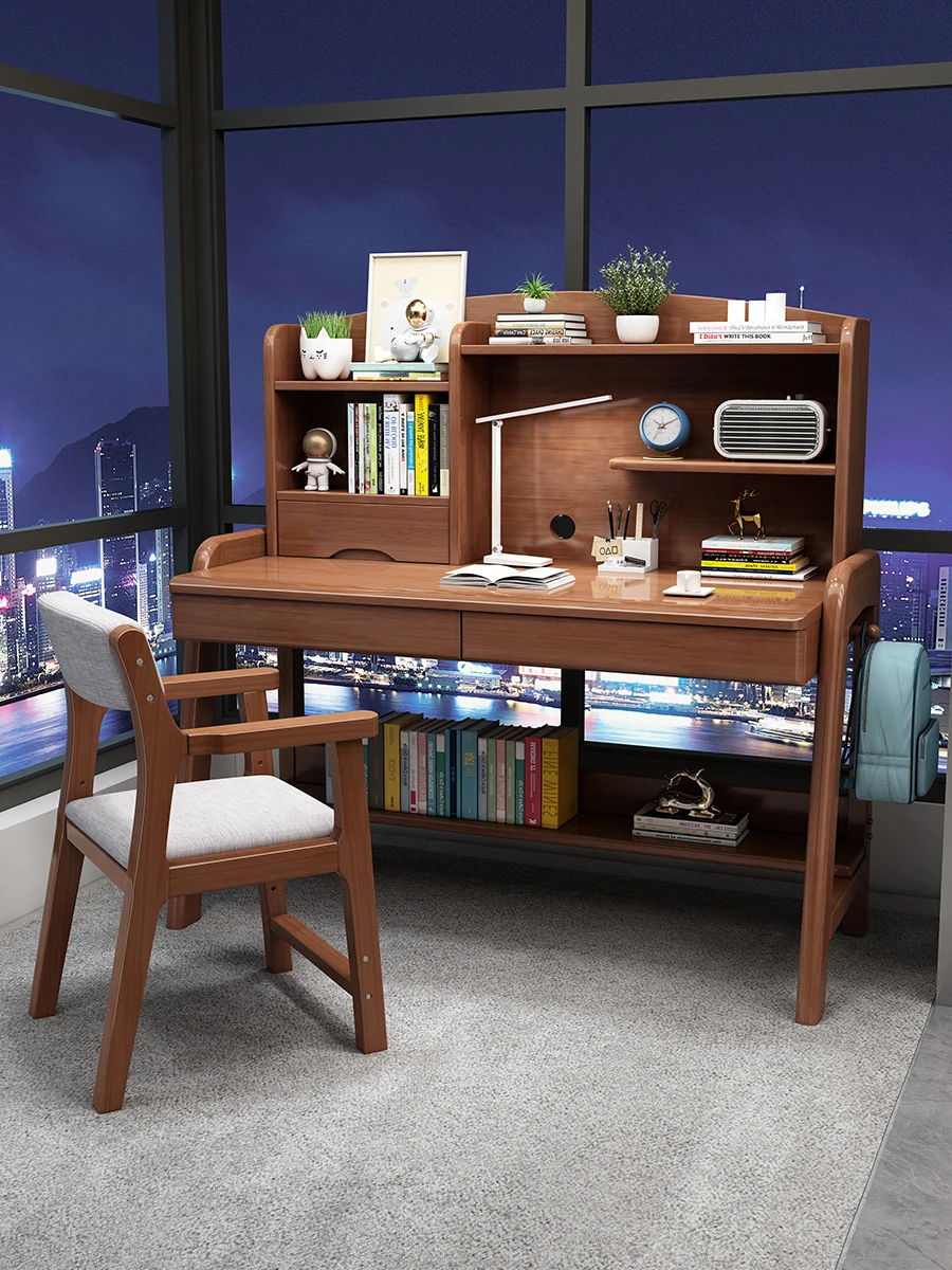 【魅力満点】天然木製デスク一体型子供学習机:家庭書斎にぴったりのシンプルなPCデスク 兼用 学生用書き机