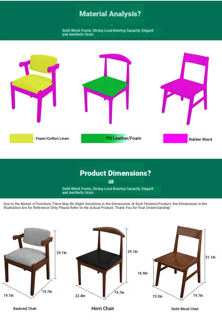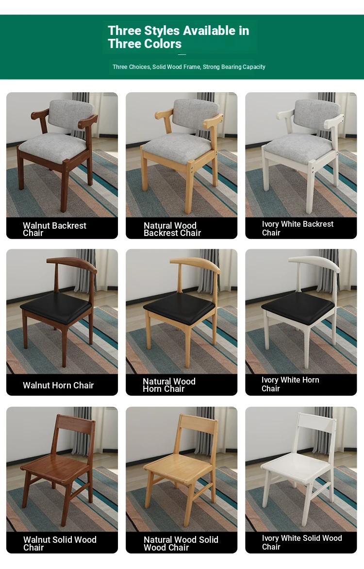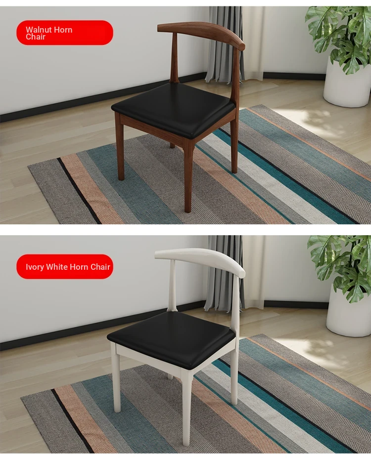 Nordic Solid Wood Horn Chair - Modern Minimalist Dining Chair with Backrest, Perfect for Home Use as a Desk or Computer Chair, Stylish and Comfortable for Leisure Relaxation