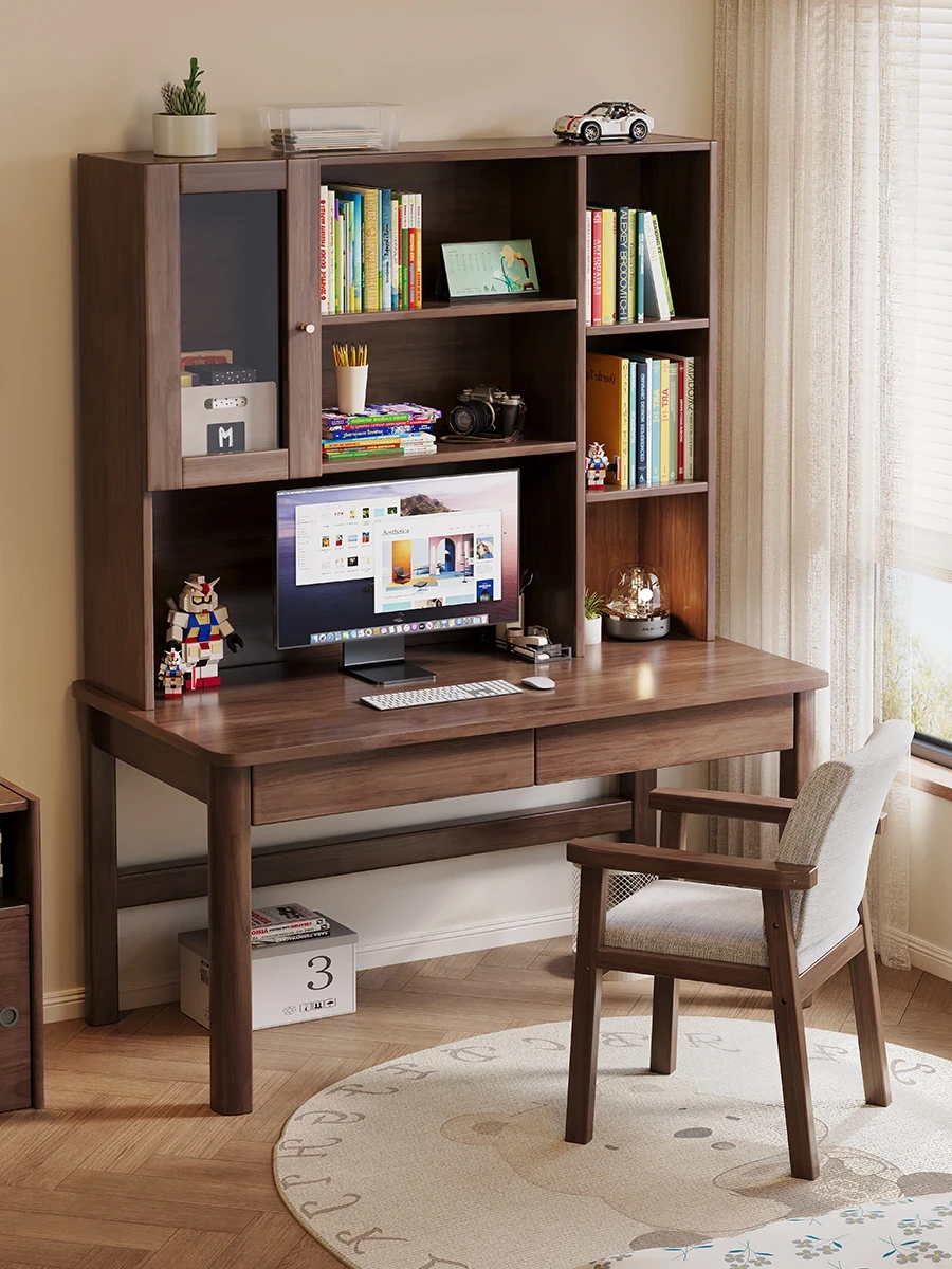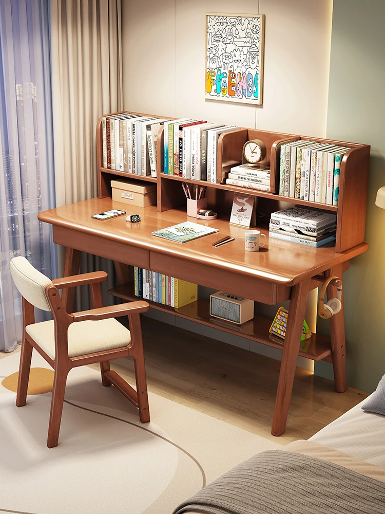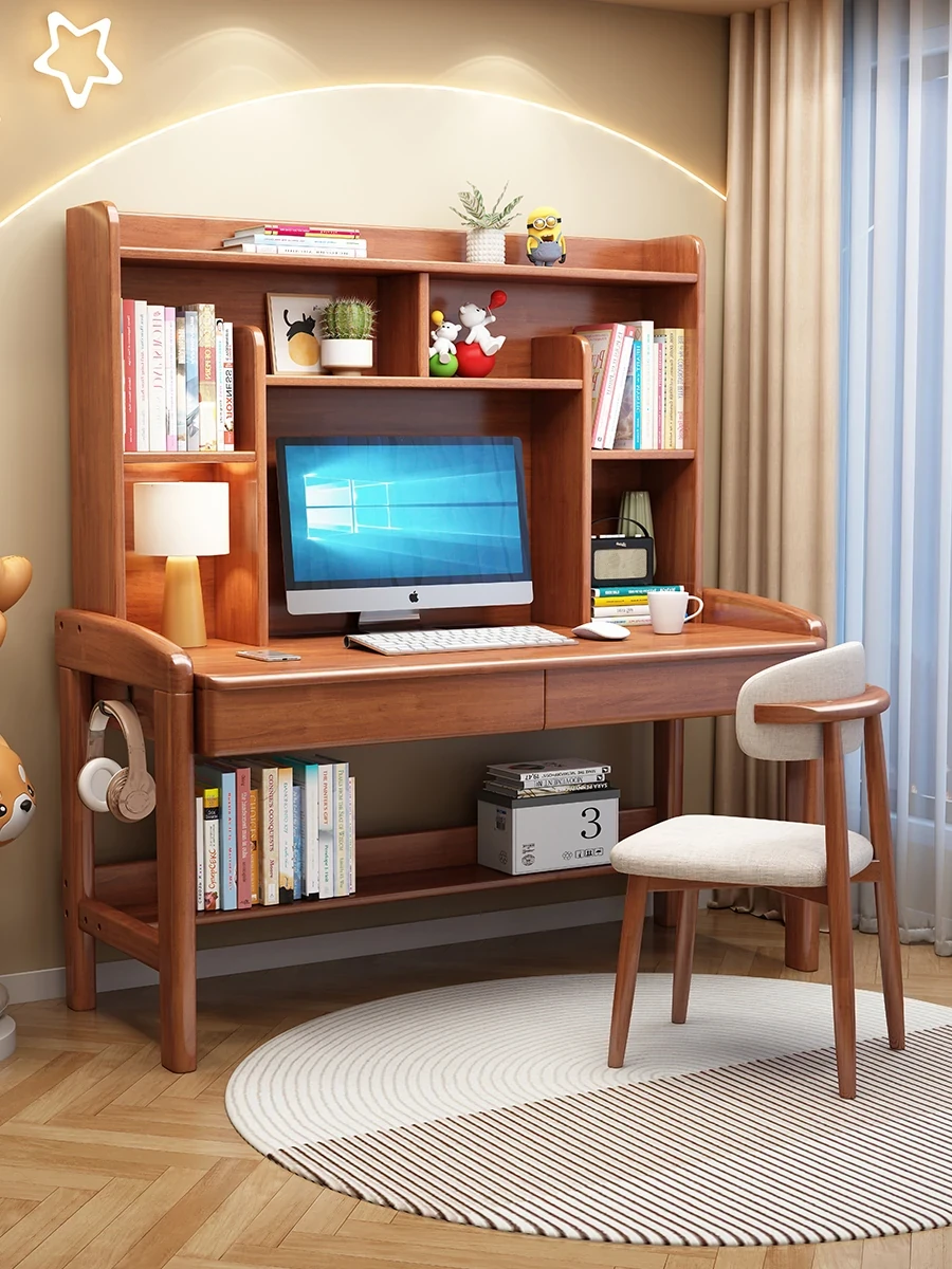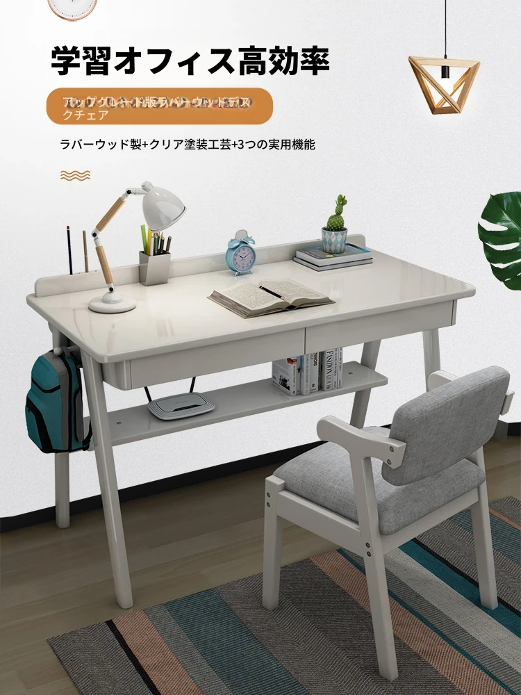 天然木材で作られた多機能デスク - 省スペースのコンパクトデザインでおしゃれな書斎を実現!学生に最適な収納付き学習デスク