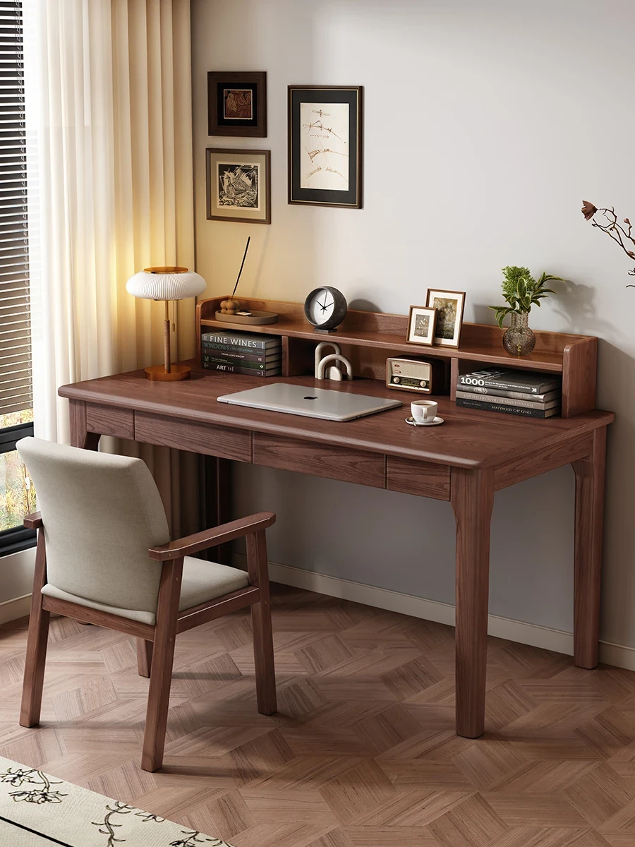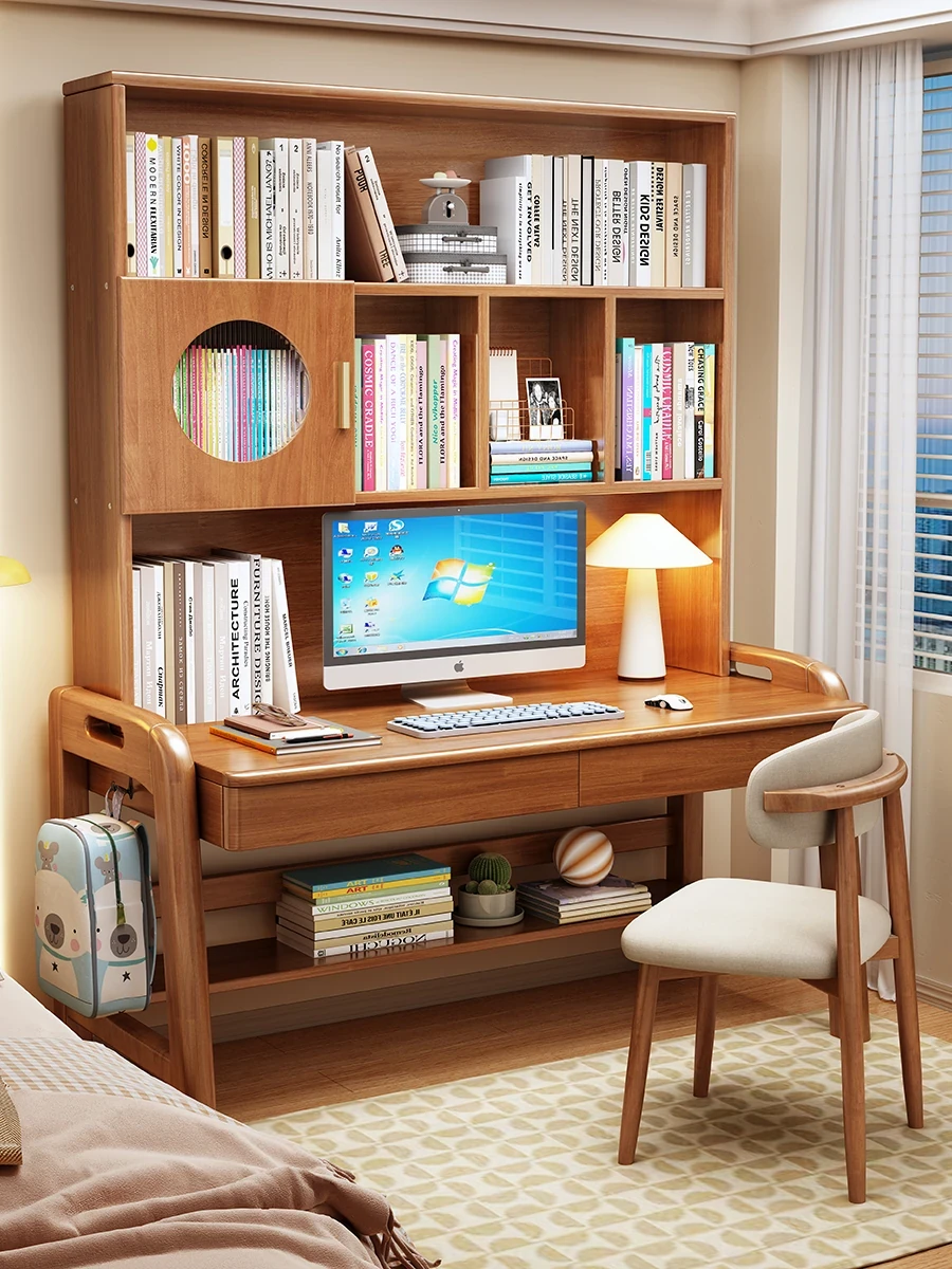 シンプルで美しい!本棚一体型天然木製デスク - 寝室にぴったり!家用オフィス用PCデスク&子供学習机