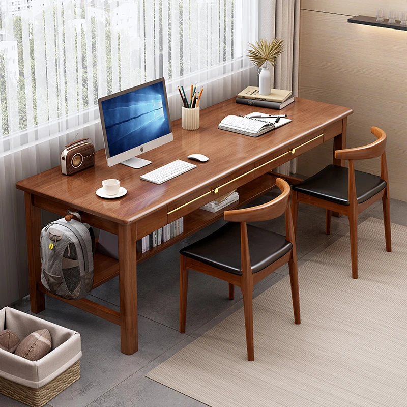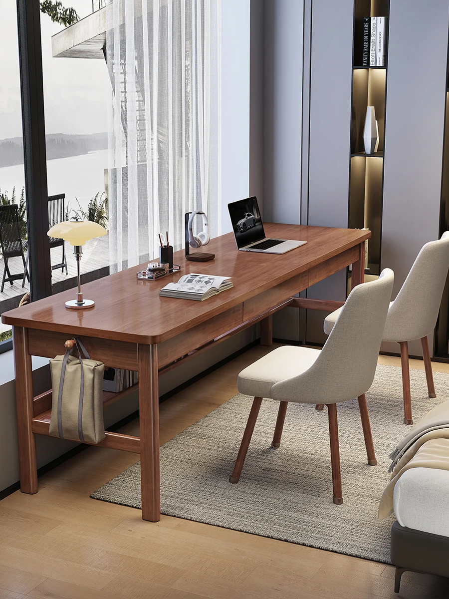 天然木製ペアデスク - シンプルで洗練されたデザイン!窓辺にぴったりの多機能長テーブル、ホームオフィスに理想的な選択。快適なワークスペースで、効率的な作業時間をサポートします。